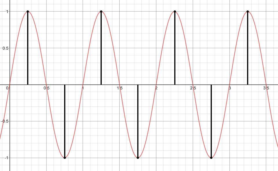 Now the problem should be clear, the sample doesn’t look anything like the original wave! When it comes time to convert this back to the analog signal that the speakers will use, it will look something like this: